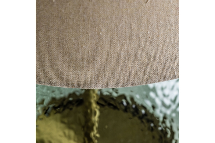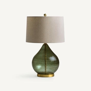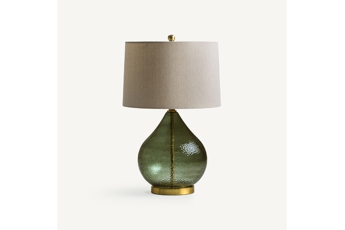 Lámpara de sobremesa, en color verde/oro, de estilo clásico. Fabricado en hierro, combinado con vidrio y lino. Producto desmontable.