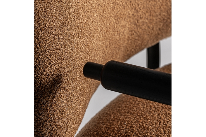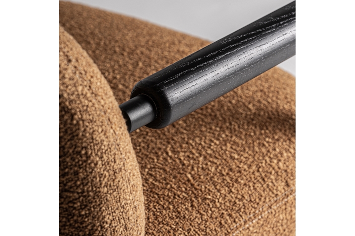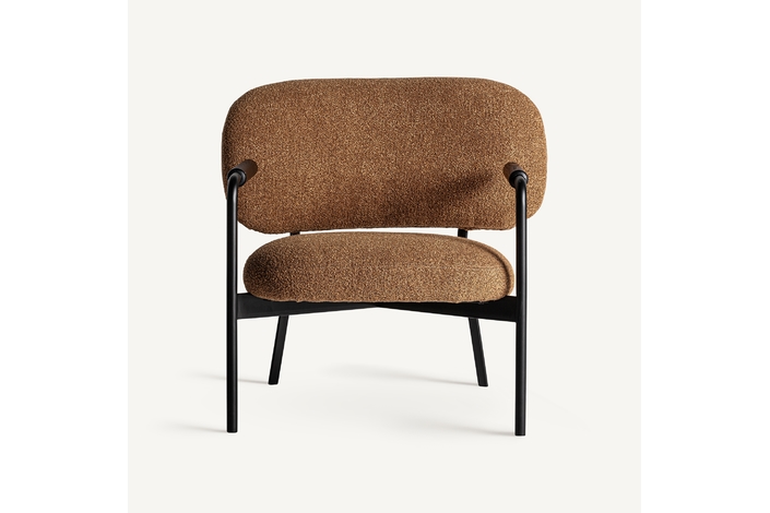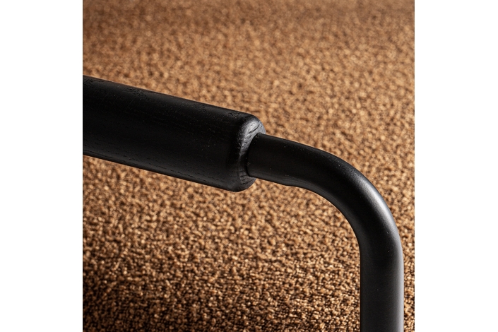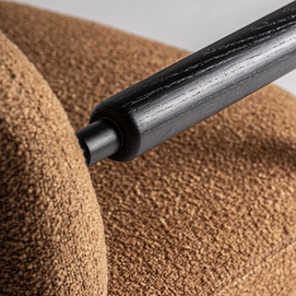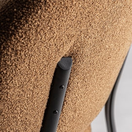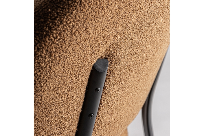 Silla, en color ocre. Fabricado en madera de pino, combinado con poliéster y metal.