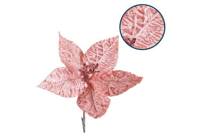 PICK POINSETTIA CON CLIP POLIESTER 24 X 24 X 10 CM