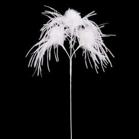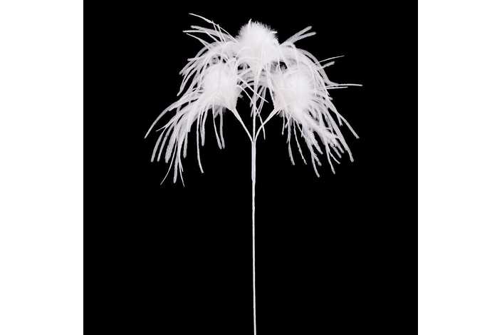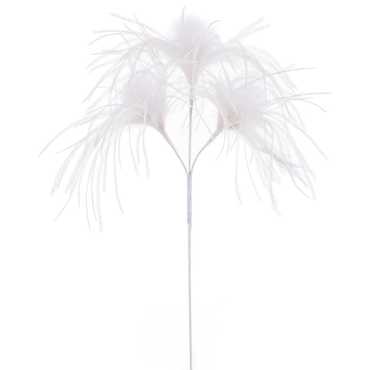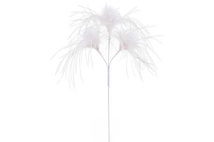 RAMA 3 HOJAS PLUMAS BLANCO 60 CM