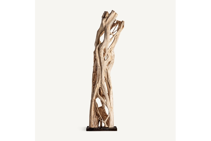 Escultura pie, en color natural, de estilo étnico. Fabricado en madera tropical.