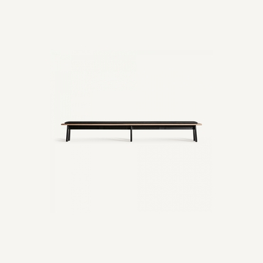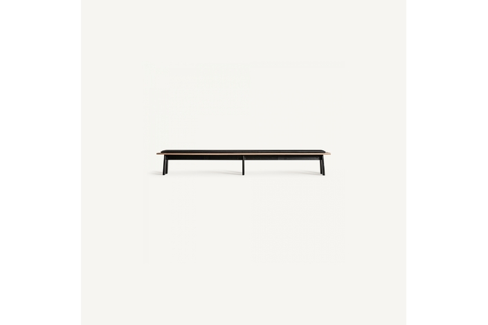 Banco nara, de estilo contemporáneo. Fabricado en madera roble, en color negro, combinado con polipiel, en color negro.