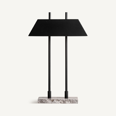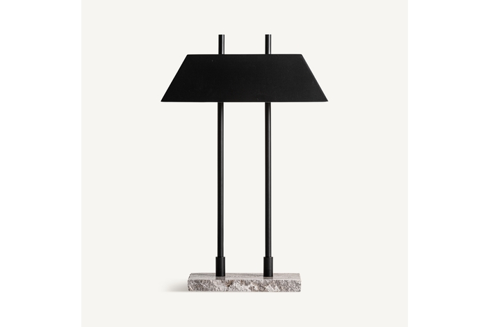 Lámpara de sobremesa. Fabricado en mármol, en color gris, combinado con metal, en color negro mate.