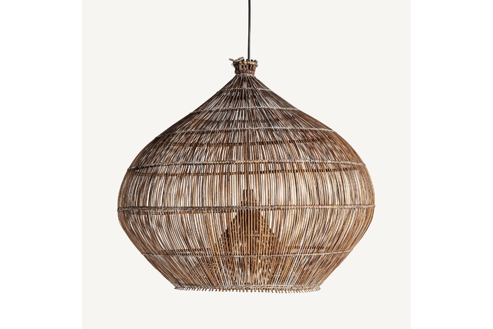 Lámpara de colgar, en color marrón, de estilo boho. Fabricado en bambú.