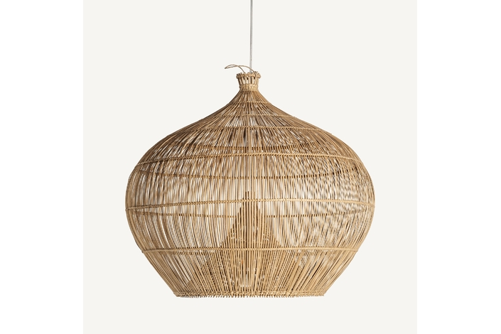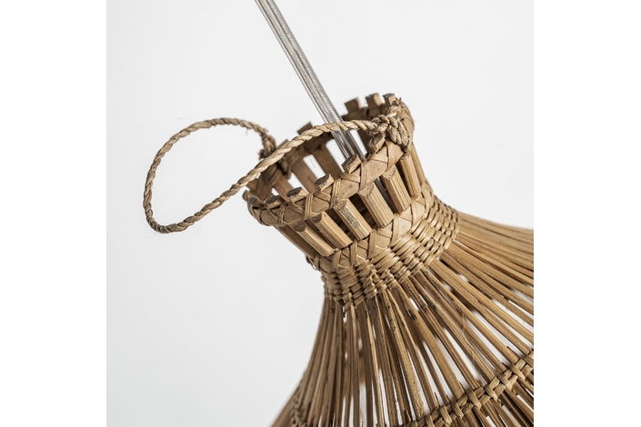 Lámpara de colgar, en color marrón claro, de estilo boho. Fabricado en bambú.