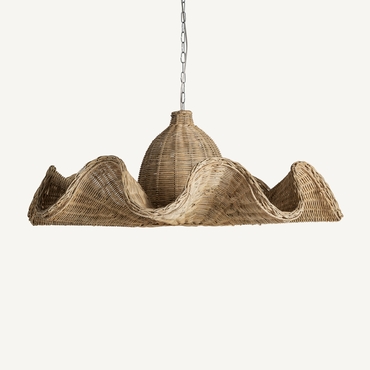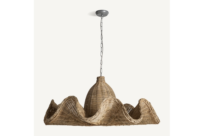 Lámpara de colgar, en color marrón. Fabricado en ratán.