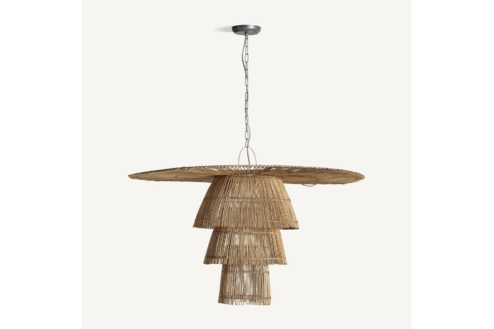 Lámpara de colgar, de estilo boho. Fabricado en ratán, en color marrón.