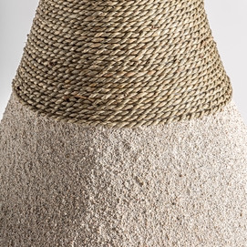 Lámpara de colgar nyland, de estilo rústico. Fabricado en resina, en color crema rugoso, combinado con yute, en color arena.