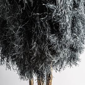 Rama decorativa j/6, de estilo boho. Fabricado en rafia, en color negro.