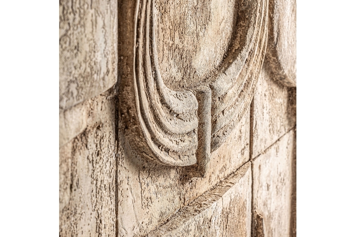 Panel decorativo, en color marrón envejecido, de estilo étnico. Fabricado en madera suar.