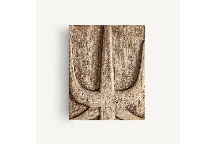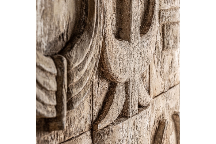 Panel decorativo, en color beige envejecido, de estilo étnico. Fabricado en madera suar.
