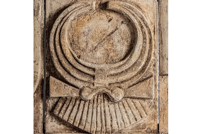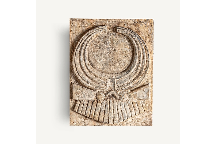 Panel decorativo, en color beige envejecido, de estilo étnico. Fabricado en madera suar.