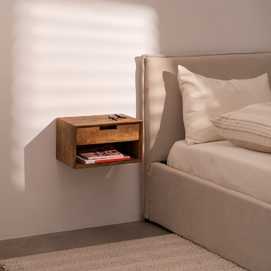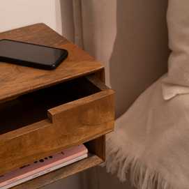 MESITA FLOTANTE MIEL MADERA DE MANGO 40 X 25 X 22 CM