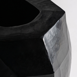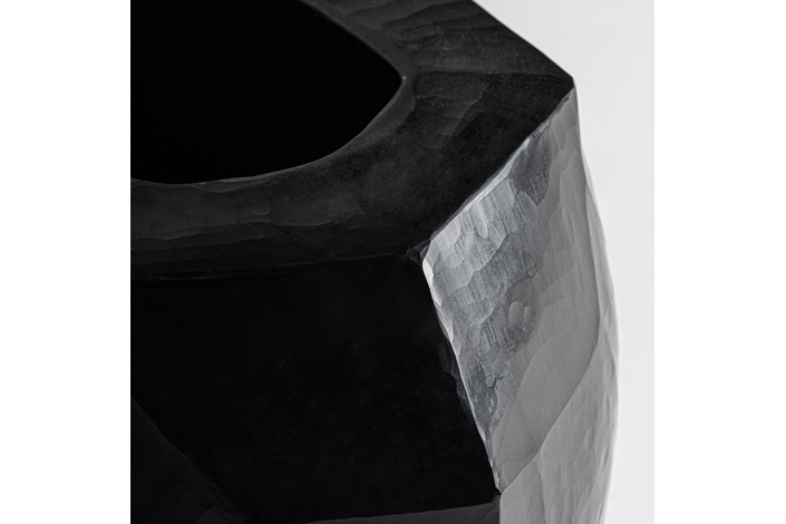 Jarrón galeo, en color negro, de estilo contemporáneo. Fabricado en cerámica.