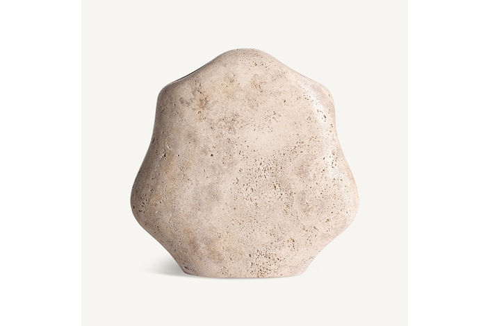 Jarrón jasha, en color crema, de estilo contemporáneo. Fabricado en mármol.