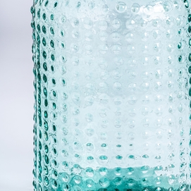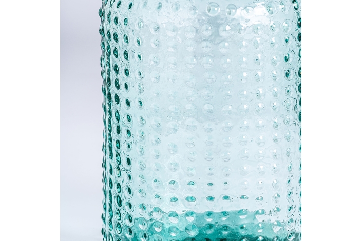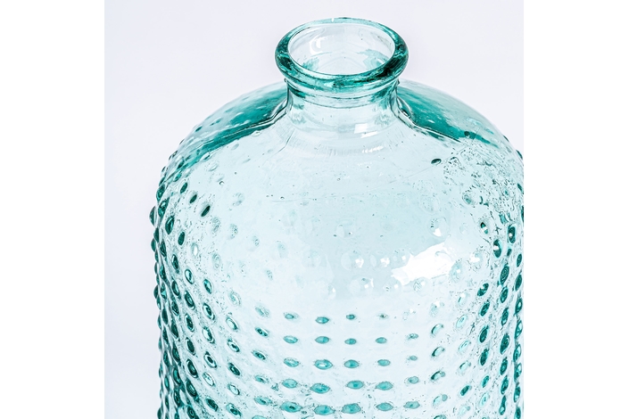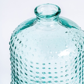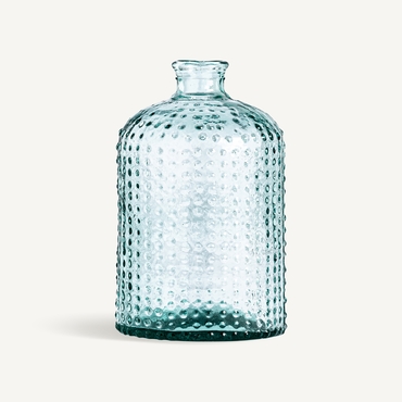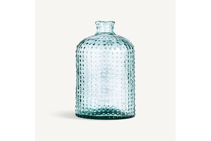 Jarrón kura, en color transparente, de estilo vintage. Fabricado en vidrio.