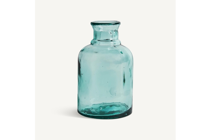 Jarrón ailen, en color transparente, de estilo vintage. Fabricado en vidrio.