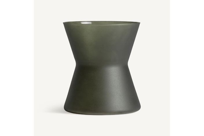 Jarrón nehoiu, en color verde, de estilo contemporáneo. Fabricado en vidrio.