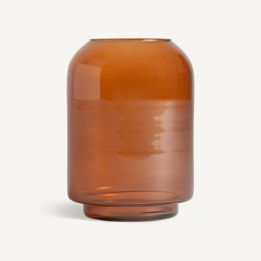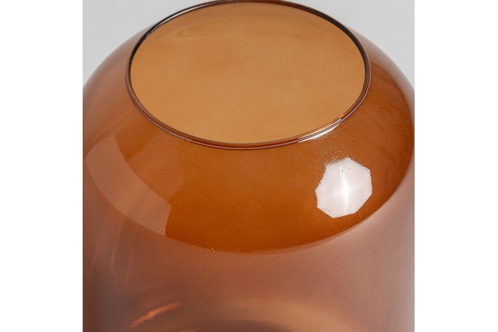 Jarrón covasna, en color ambar, de estilo contemporáneo. Fabricado en vidrio.