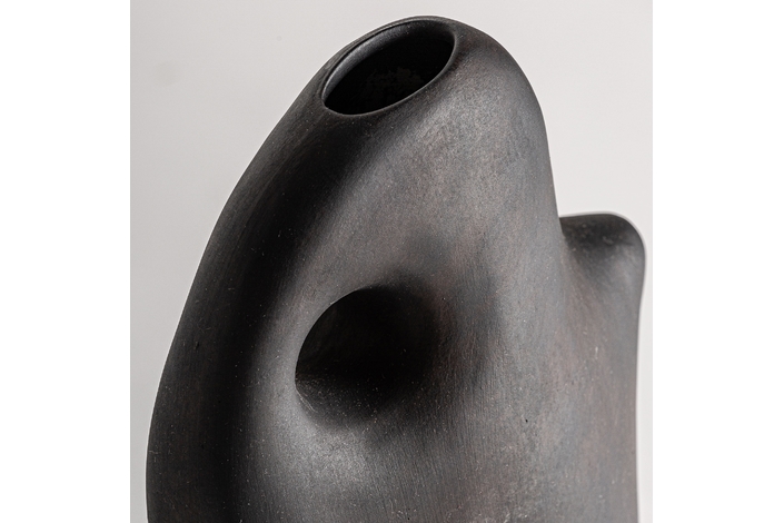 Jarrón nohae, en color negro, de estilo art deco. Fabricado en cerámica.