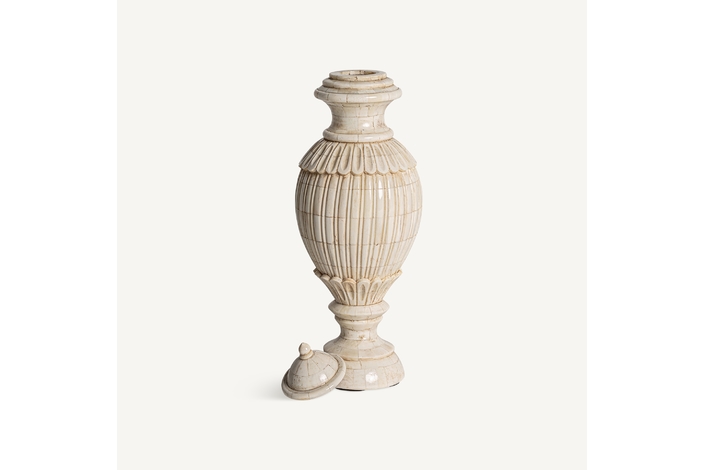 Tibor jarek, en color marfil, de estilo colonial. Fabricado en resina.