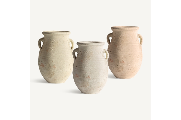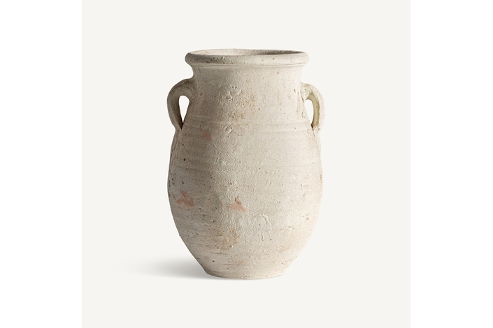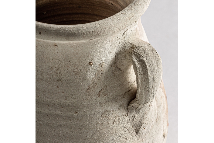 Jarrón kansara, en color crema envejecido, de estilo vintage. Fabricado en arcilla.