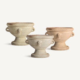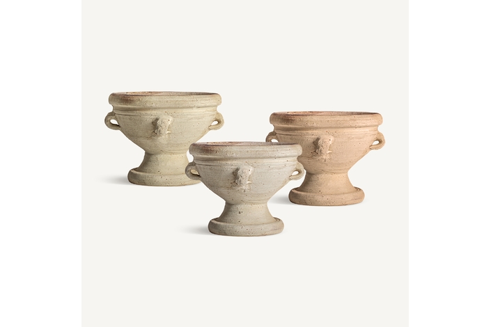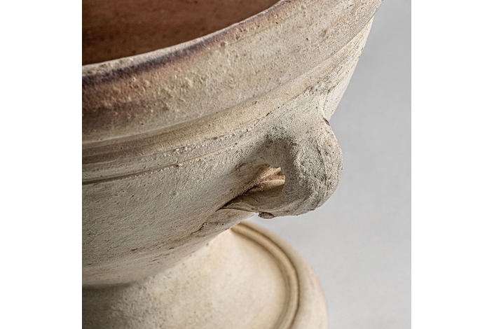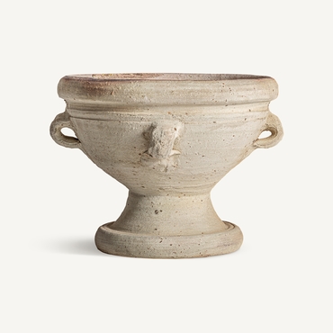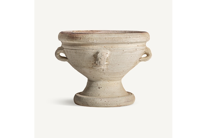 Jarrón kansara, en color crema envejecido, de estilo vintage. Fabricado en arcilla.