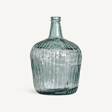 Jarrón sumaya, en color transparente, de estilo vintage. Fabricado en vidrio reciclado.