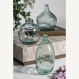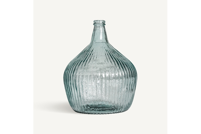 Jarrón sumaya, en color transparente, de estilo vintage. Fabricado en vidrio reciclado.