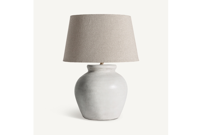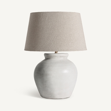 Lámpara de sobremesa, en color blanco/marrón decapado, de estilo contemporáneo. Fabricado en cemento, combinado con algodón. Producto desmontable, elevable.