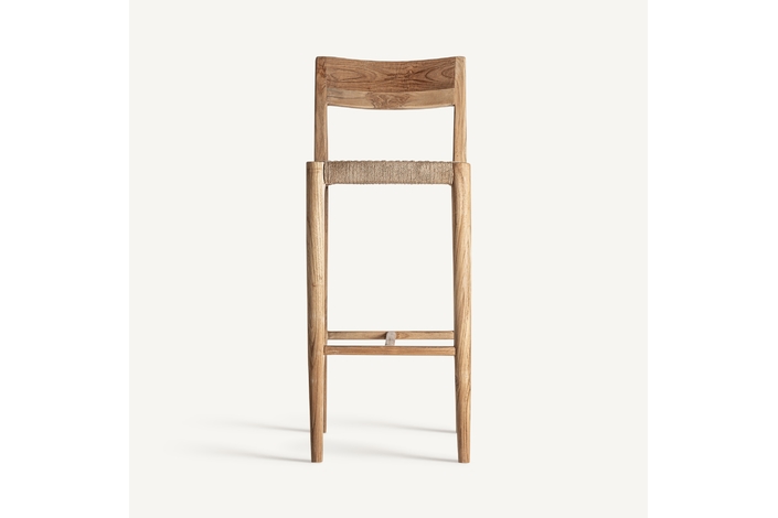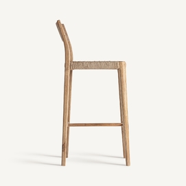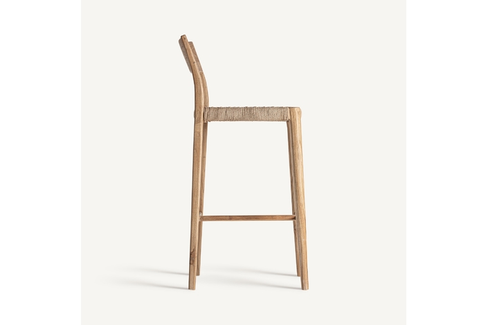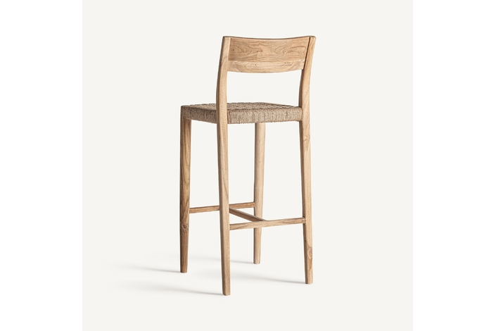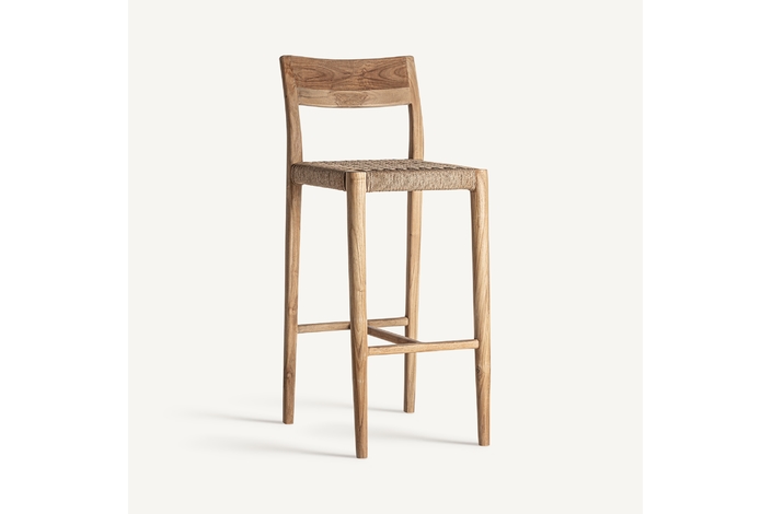 Taburete, fabricado en madera de teka, combinado con fibra natural.