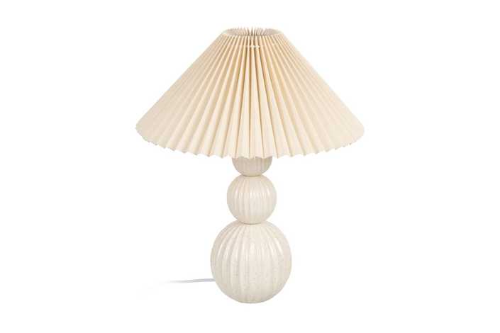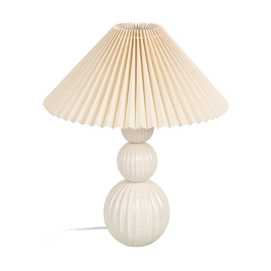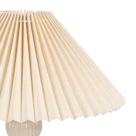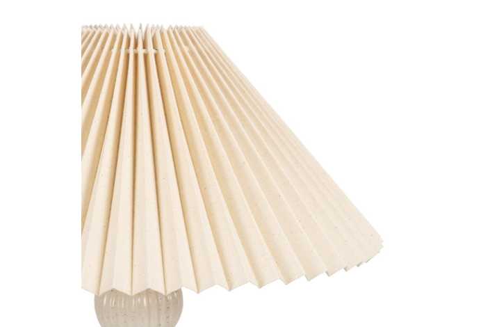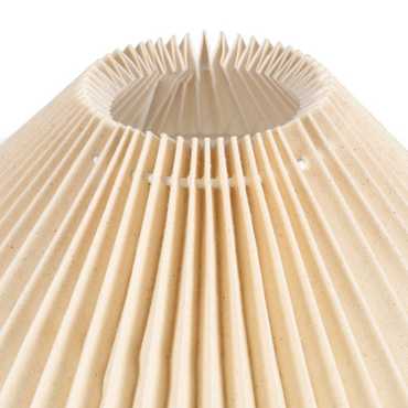 Base de cerámica, medidas 13,5x13,5x27cm. Pantalla de tejido y PVC, medidas 35x35x16cm. Voltios: 220-240V. Casquillo: E27. Bombilla: 1*40W (no incluida). Longitud cable: 130cm.