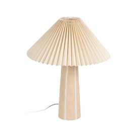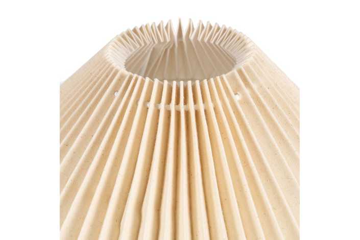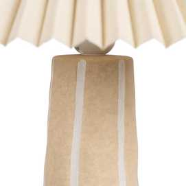 Base de cerámica, medidas 10x10x26,5cm. Pantalla de tejido y PVC, medidas 35x35x16cm. Voltios: 220-240V. Casquillo: E27. Bombilla: 1*40W (no incluida). Longitud cable: 135cm.