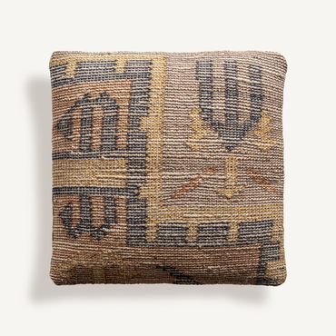 Cojín, fabricado en algodón, combinado con yute en color tonos en marrón con acabado estampado.
