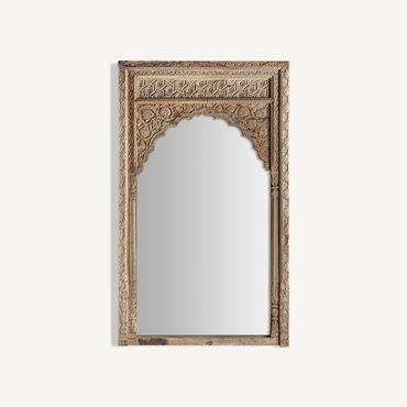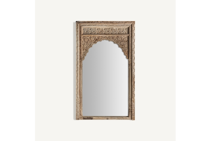 Espejo argeen, en color natural envejecido, de estilo étnico. Fabricado en madera de teka, combinado con espejo.