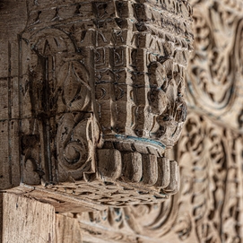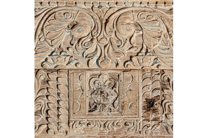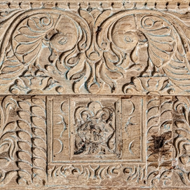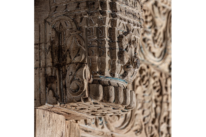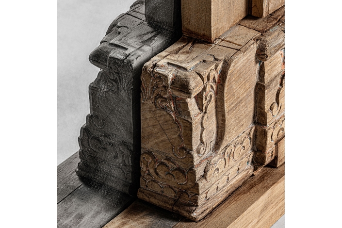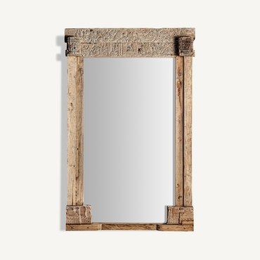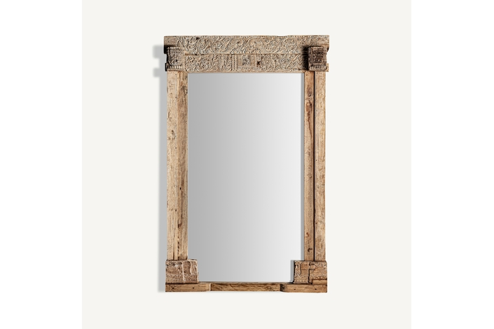 Espejo argeen, en color natural envejecido, de estilo étnico. Fabricado en madera de teka, combinado con espejo.