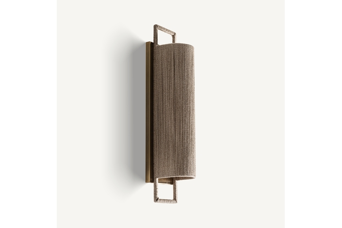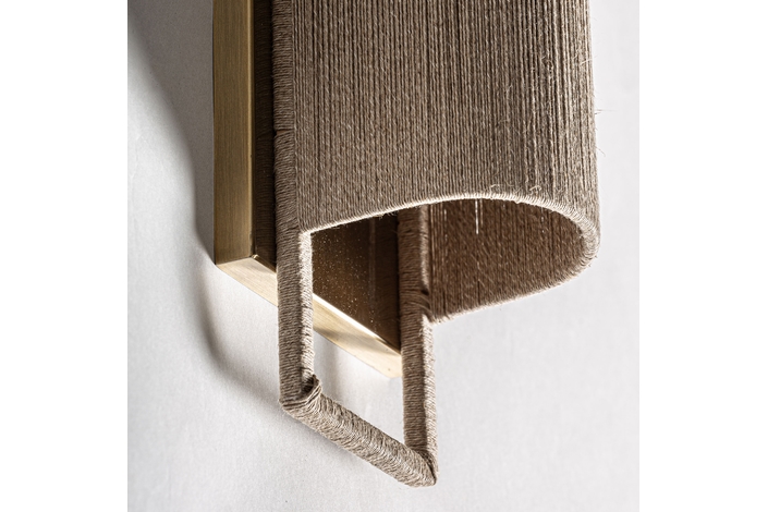 Aplique rives, en color marrón, de estilo art deco. Fabricado en hierro, combinado con cuerda.