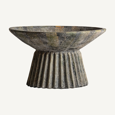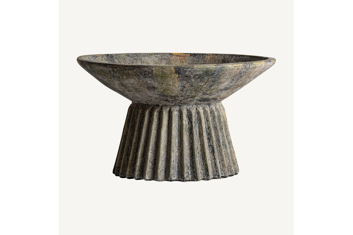 Ánfora plissé stone de estilo clásico, fabricado en cemento en color tonos en verde.