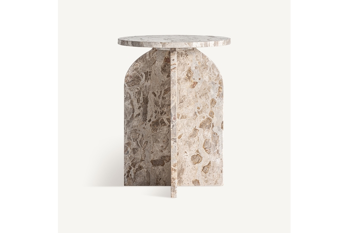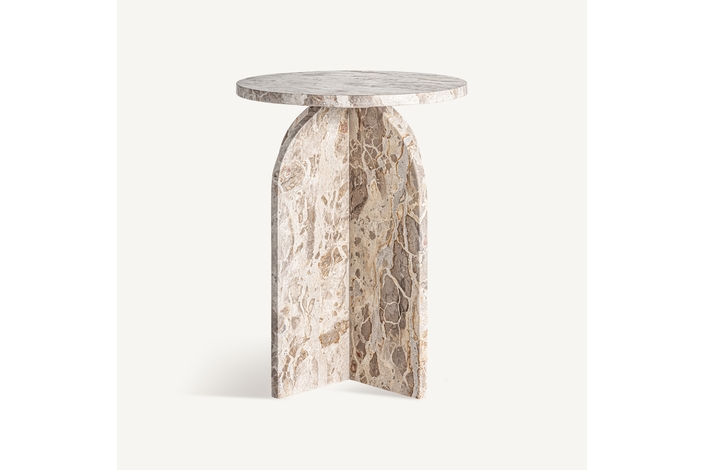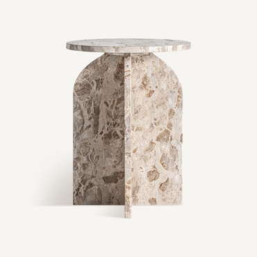 Mesa auxiliar de estilo art deco, fabricado en mármol en color beige.