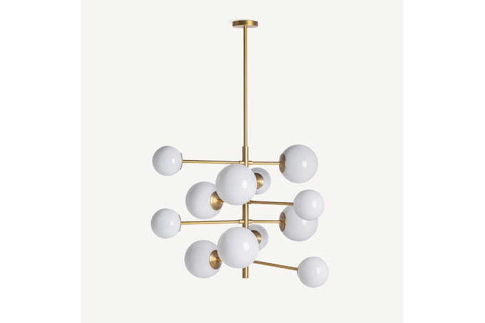 Lámpara de colgar, en color oro, de estilo art deco. Fabricado en hierro, combinado con cristal. Producto desmontable. Compatible con: 27760, 27761.