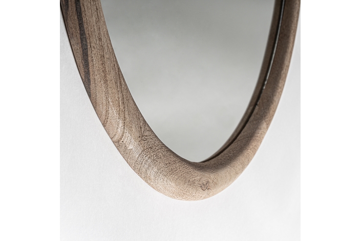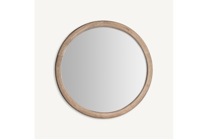 Espejo jacquard, de estilo contemporáneo. Fabricado en madera de mango, en color marrón claro, combinado con espejo.