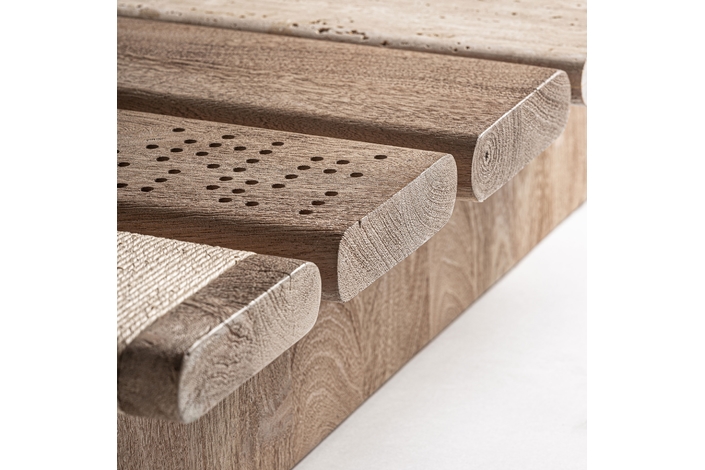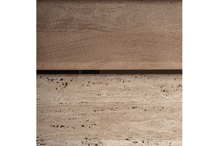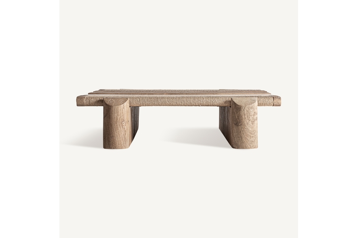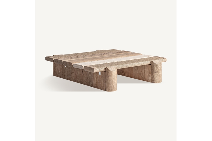 Mesa de centro jacquard, de estilo contemporáneo. Fabricado en madera de mango, en color marrón claro, combinado con mármol, en color marrón. Producto desmontable.