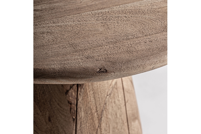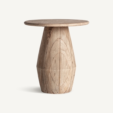 Mesa auxiliar jacquard, de estilo contemporáneo. Fabricado en madera de mango, en color marrón claro.