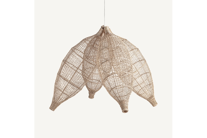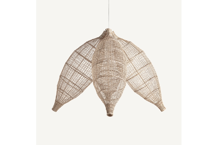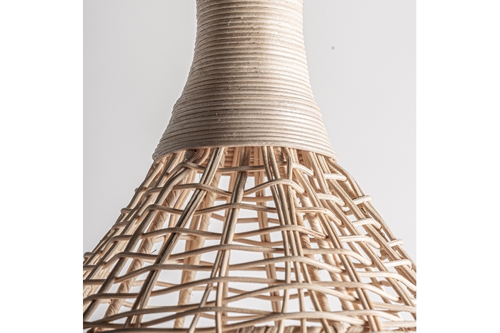 Escultura de estilo boho, fabricado en ratán en color marrón.