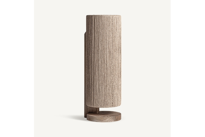Lámpara de pie jacquard, de estilo contemporáneo. Fabricado en madera de mango, en color marrón, combinado con rafia, en color marrón claro.