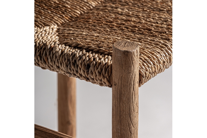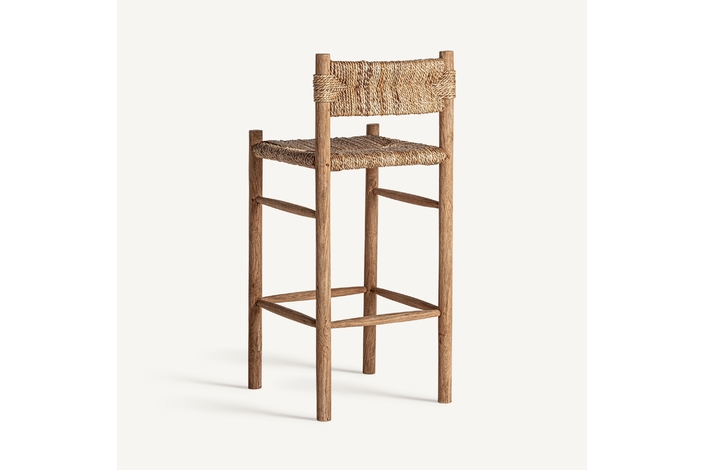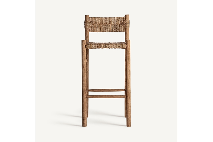 Taburete. Fabricado en madera de teka, combinado con fibra natural.