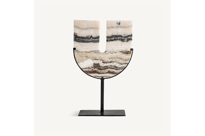 Figura decorativa, fabricado en mármol en color gris, combinado con hierro en color negro.
