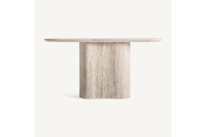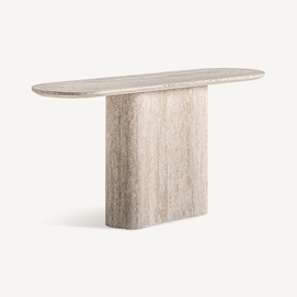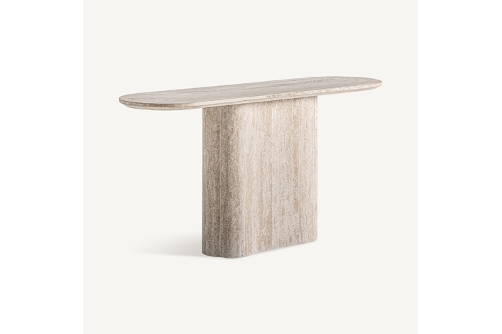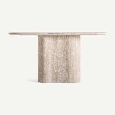 Consola Thiennes de estilo art deco, fabricado en travertino en color marrón claro. Producto desmontable.