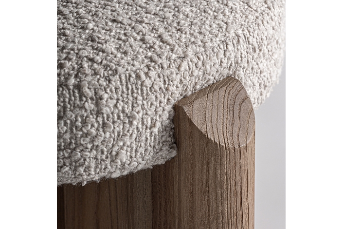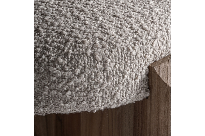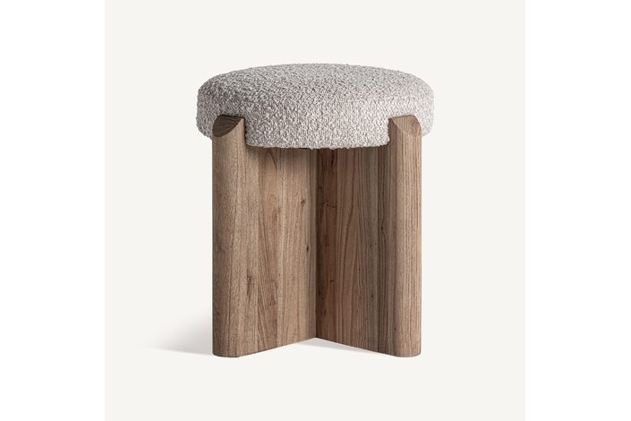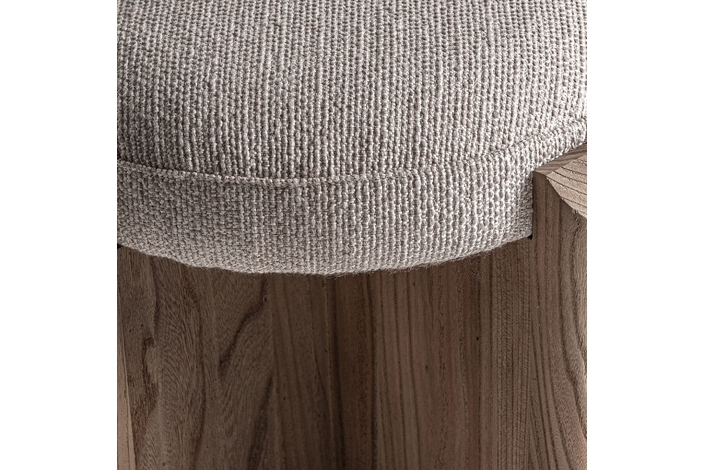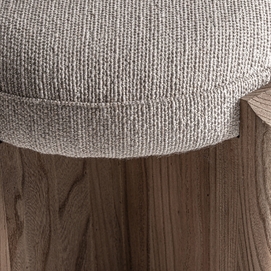Taburete jacquard, de estilo contemporáneo. Fabricado en madera roble, en color marrón claro, combinado con poliéster, en color beige.