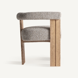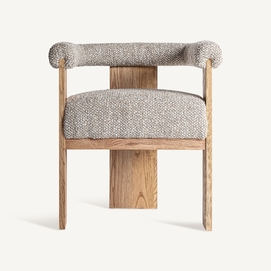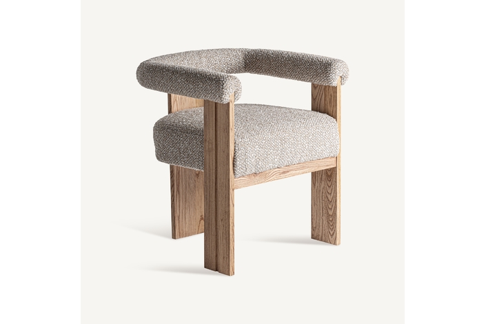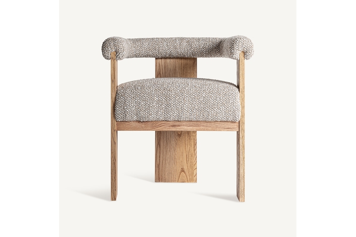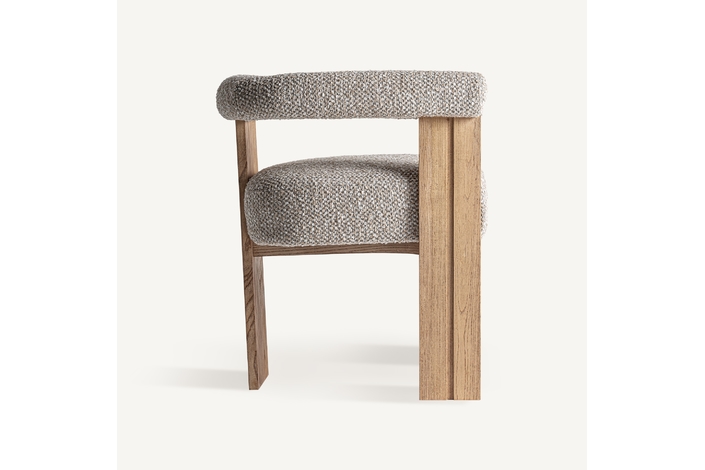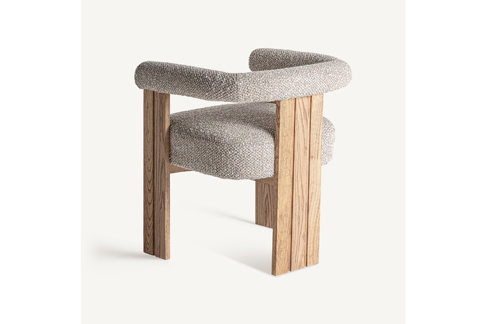 Silla, fabricado en poliéster en color beige, combinado con madera roble en color gris en color marrón claro.
